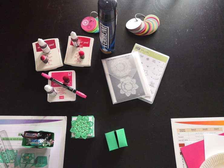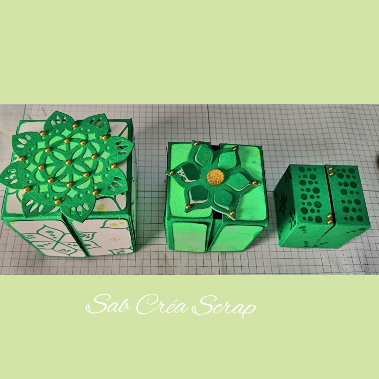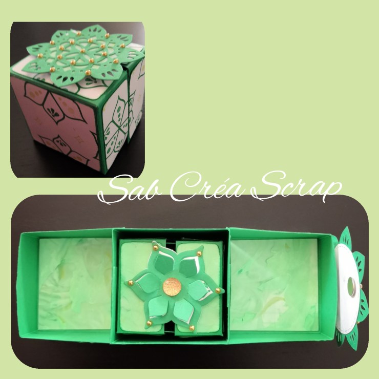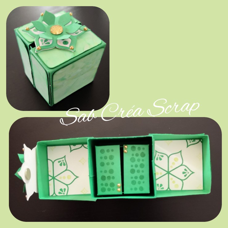 Après 2 atelier mini albums, j’ai donc proposé des boîtes gigognes, en m’inspirant de la boîte cube de Stéphanie Courtonne, une autre démonstratrice Stampin’Up! ®.