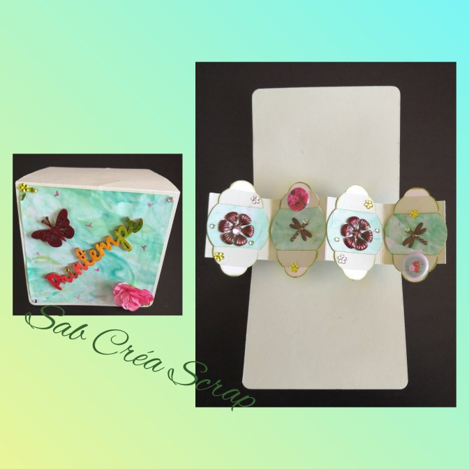 Il fallait réaliser une carte Twist Pop-up sur le thème du printemps et un Fliptag sur le thème des 4 saisons.