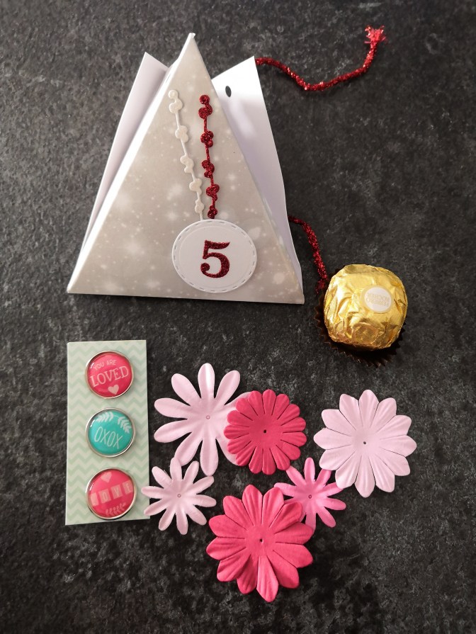 Pour ce mois de mai, j’ai découvert dans ma boite, des fleurs, des brads et un Ferrero.