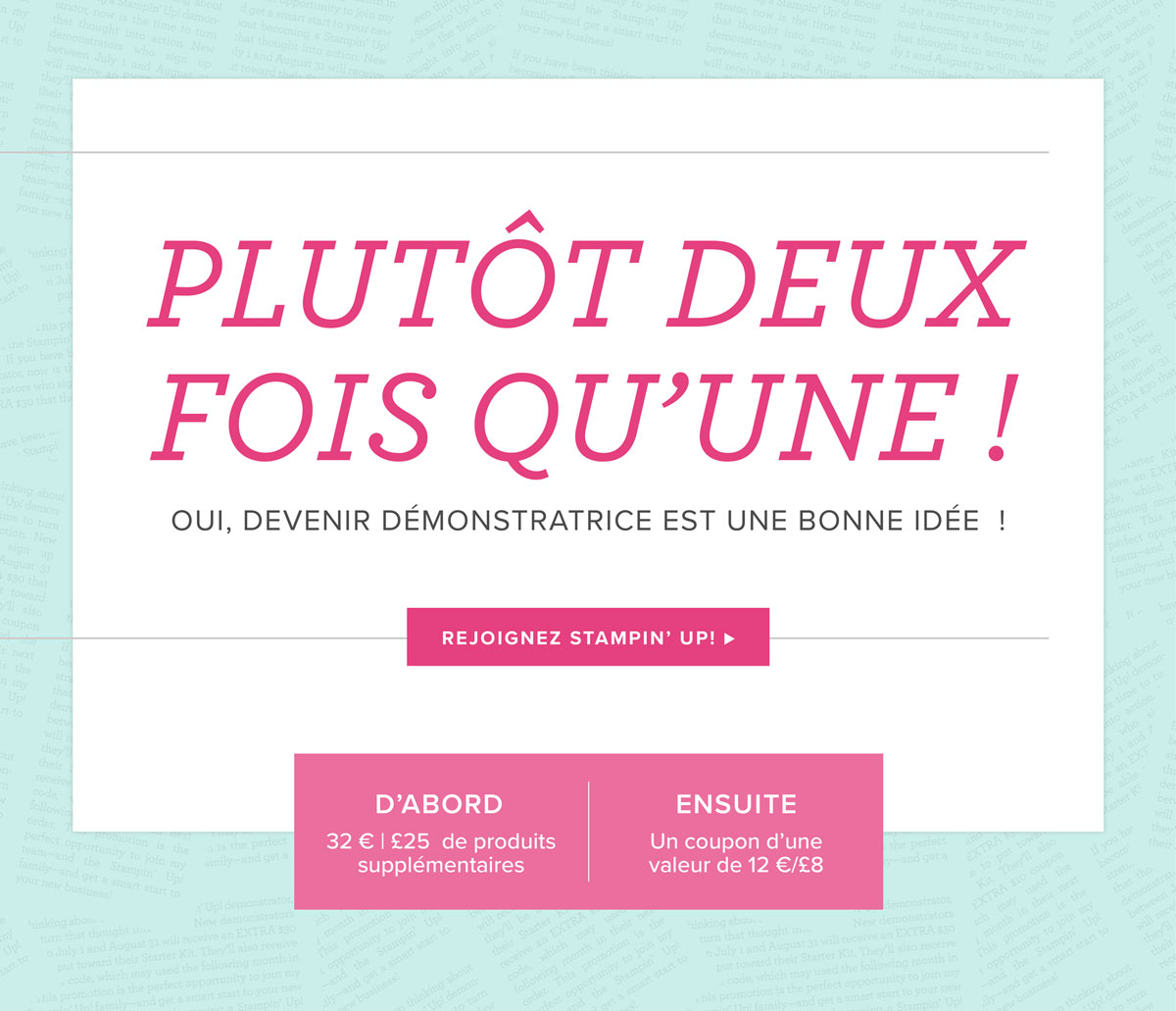 Cet été, Stampin’Up!® vous offre l’opportunité de vous faire plaisir à travers 2 offres totalement différentes.
