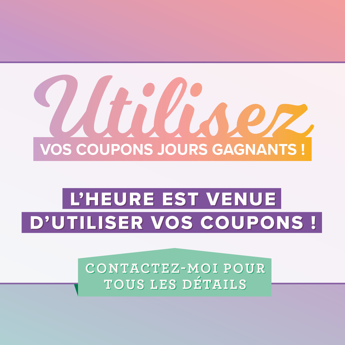 Ca y est… le mois d’août a commencé!!! C’est maintenant l’heure d’utiliser les coupons que vous avez gagnés lors de vos achats du mois de juillet.