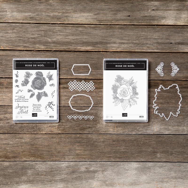 Le lot Rose de noël (153945 – 73,75€) permet de bénéficier de 10% pour l’achat des tampons et des poinçons en simultanée.