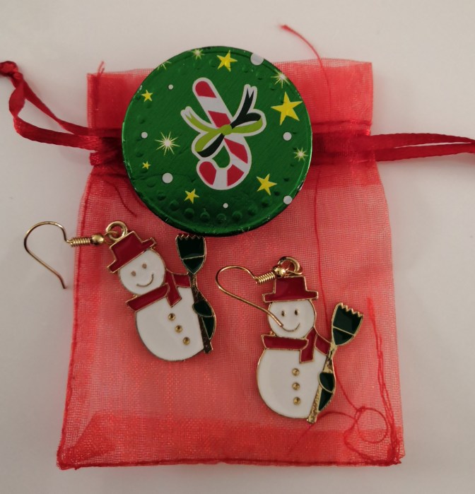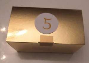 Le jour 1, c’est Émilie qui a ouvert le bal. Avec sa jolie boite à explosion qui contenait une boite arrondie et 24 idées pour profiter pleinement de l’Avent. La boîte arrondie cachait une paire de boucles d’oreilles et un chocolat.