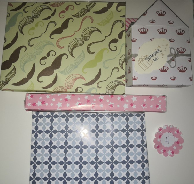 Le jour 4, c’est ma copine d’amour Katty qui nous régale. 4 petits paquets (dont un qu’on ne pourra ouvrir que le 21). Du thé, des gourmandises, des embellissements, un stylo et un crayon customisé. J’ai hâte de savoir ce que nous réserve la grande enveloppe.