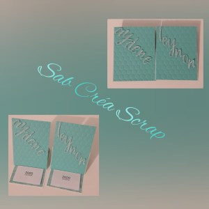 ¨Pour les enfants de mon ami exilée au Canada, j’ai fait la même version dans les tons Copacabana. J’ai utilisé les poinçons Prose cursive pour écrire leurs prénoms.