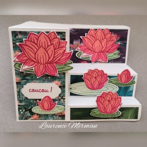 Laurence M. (qui a organisé le swap), nous a mis en valeur des cadeaux SAB : le DSP Nénuphars Impressionnistes, le set de tampons Lovely Lily Pad et les poinçons Nénuphar.