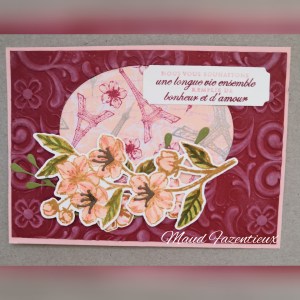 Maud a également utilisé le DSP spécialité Printemps parisien , mais elle l’a associé au plioir à gaufrage 3D Fioritures parisiennes et le lot Fleurs pour toujours.