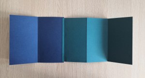 - Coller chaque carré sur l’accordéon, en veillant à ce que le recto et le verso soient sur le même pan d’accordéon.