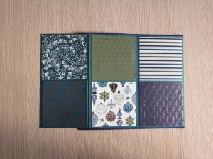 - Couper un rectangle de 6½ ‘’*7¼’’ dans un papier A4 assorti à la collection