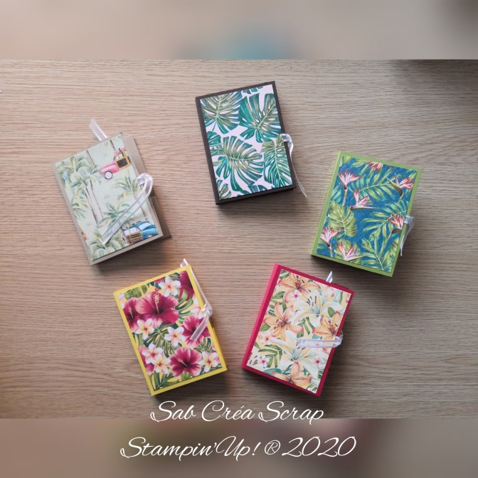 Comme d’habitude, j’ai créé des petites pochettes pour que les ATC voyagent en toute sécurité… et le DSP Oasis Tropicale me semblait tout a fait approprié pour cet envoi.