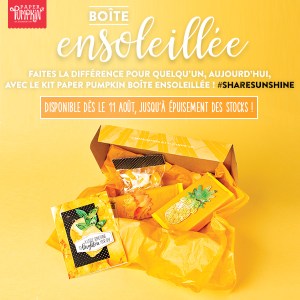 Si vous souhaitez envoyer d’autres boites ensoleillées… vous pouvez utiliser les mini boîtes Paper Pumkin que vous pourrez décorer à votre goût.