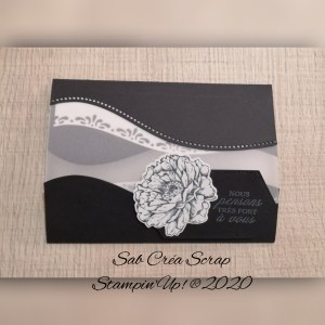 J’ai choisi de faire une carte de condoléances. Je n’aime pas faire ce genre de cartes et encore moins en noir et blanc, mais là j’en avais besoin d’une et c’était l’occasion de sortir de ma zone de confort.