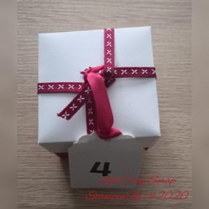 Pour le chiffre mystère, j’ai utilisé les nouveau poinçons alphabet dans du papier assortie au couvercle de la boite. J’ai utilisé une collection de noël de l’an dernier pour mettre en valeur le chiffre.