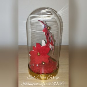 J’ai commencé par la partie la plus longue et fastidieuse : découper et assembler les poinsettias pour le centre de table. J’ai fait une petite infidélité à SU pour le cœur des poinsettias et la cloche. Au départ, je voulais utiliser la tige des cœurs pour les fixer au support, mais cela manquait de rigidité. J’ai finalement opté pour 2 pailles en plastique et de la colle chaude.