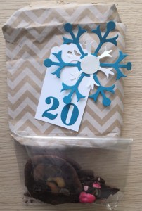 Le lutin du J23 était Chantal alias Mamika. Dans nos paquets, nous avions une boîte remplie de gourmandises et un petit carnet cachant un calendrier 2021.
