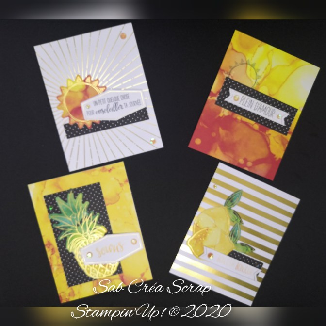 J’ai aussi utilisé 2 kits Paper Pumkin proposé pendant l’été 2020 : Boite Ensoleillée. Chaque boite permet de faire 8 cartes.