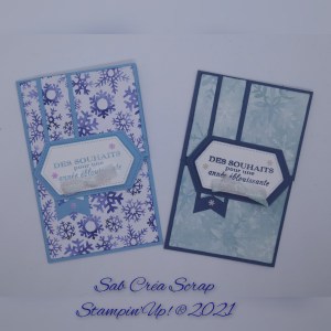 Même si pour les cartes de vœux, j’ai utilisé certains articles qui ne sont plus au catalogue. Pour la carte d’anniversaire, j’ai utilisé un papier et un set de tampons que vous pouvez avoir en cadeaux SAB jusqu’au 28/02/2021.