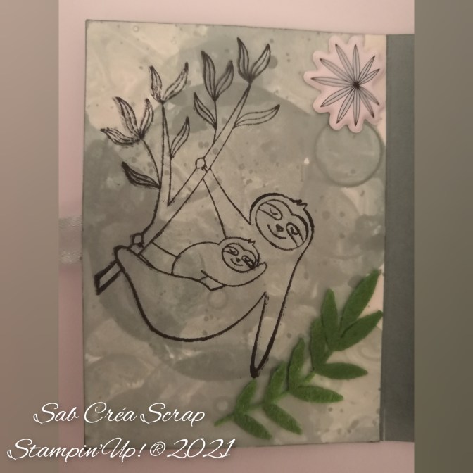 J’ai travaillé avec la couleur Soyeuse succulente et pour le fond des 3 ATC, avec la technique des bulles de savon.