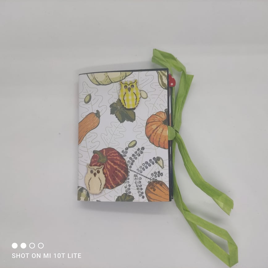 J’ai fait la structure en Ocre roussillon et j’ai travaillé différents fonds au doigts éponge. Dans certaines, j’ai fait des découpes et j’ai redécoupé d’autres au format ATC pour faire la couverture et les pages intérieures.