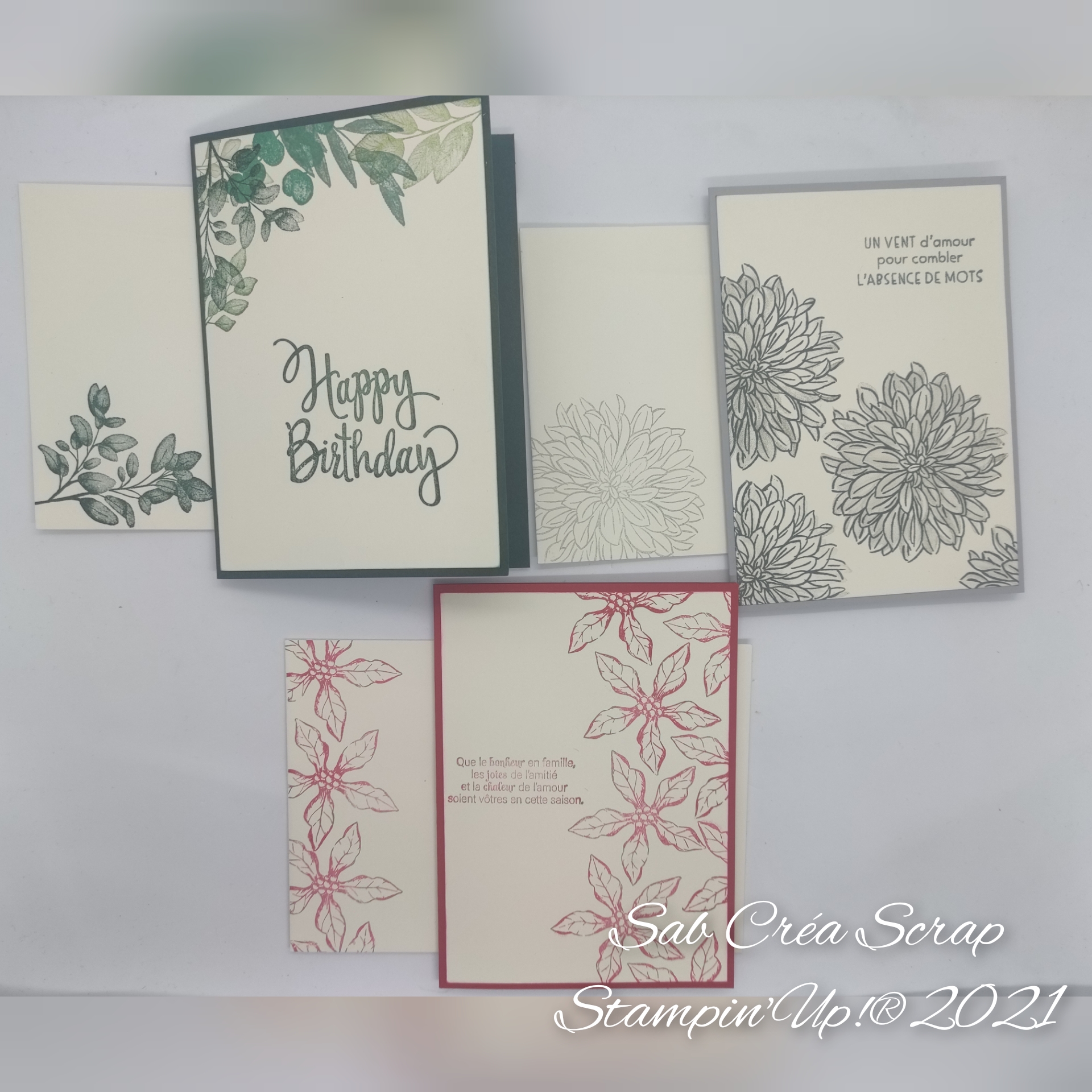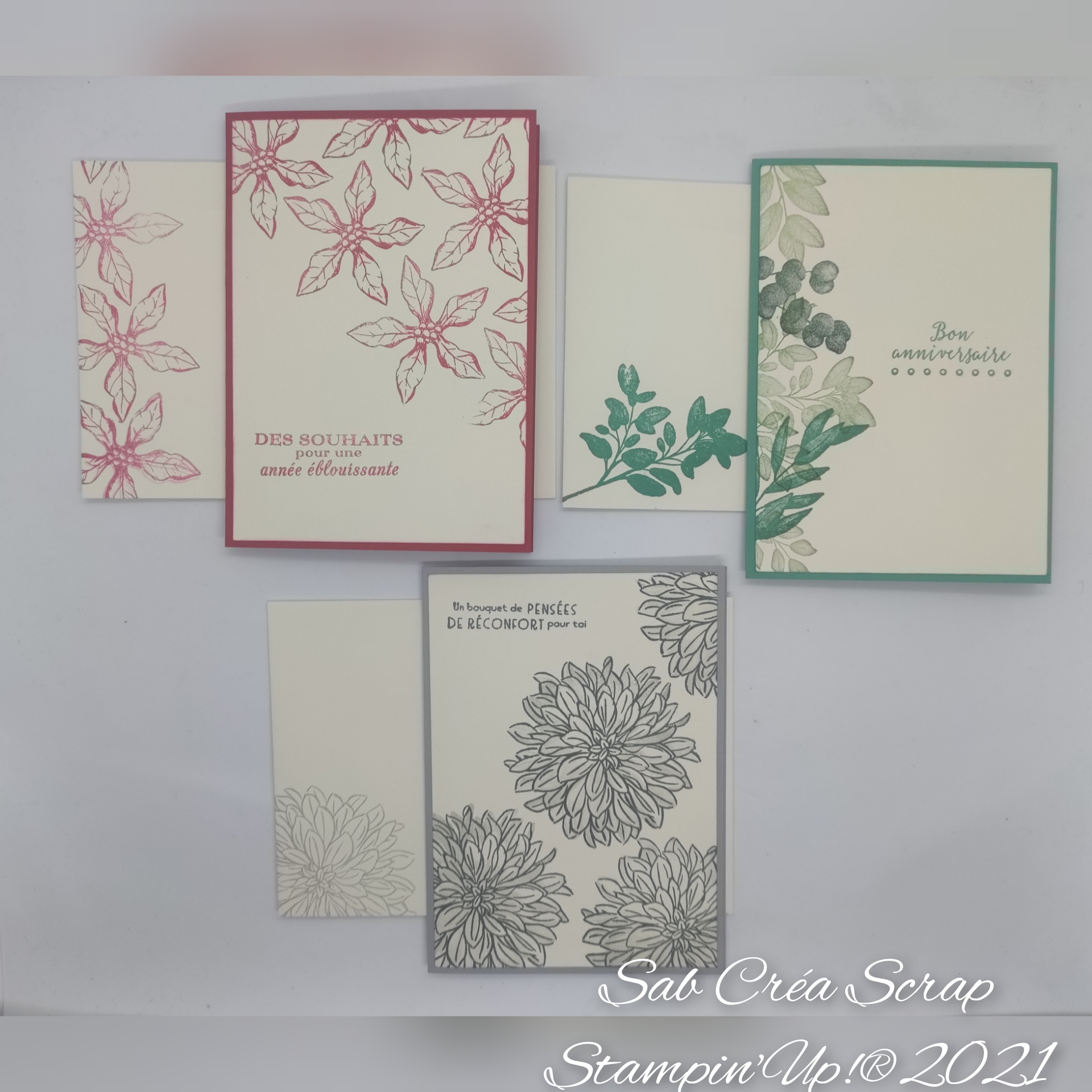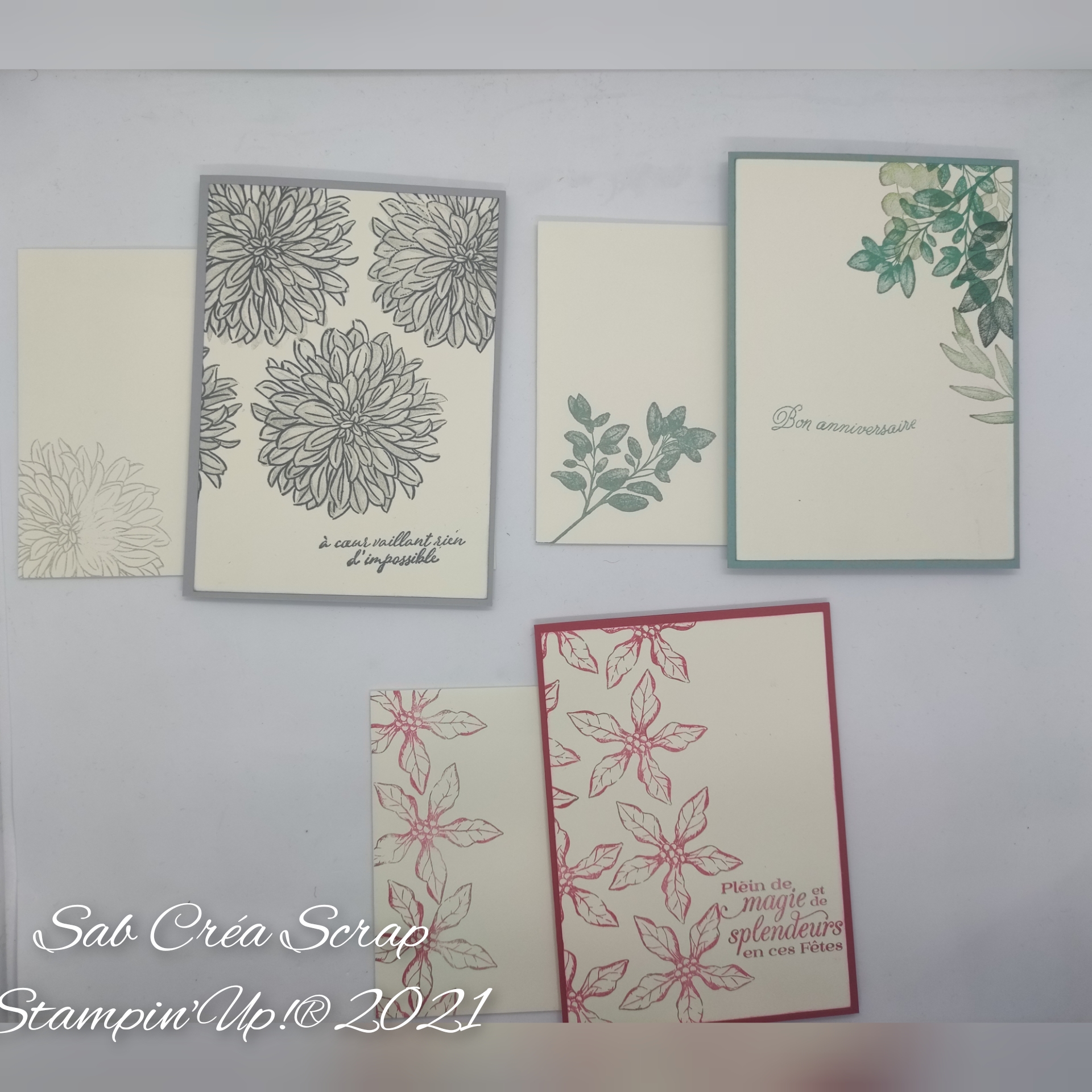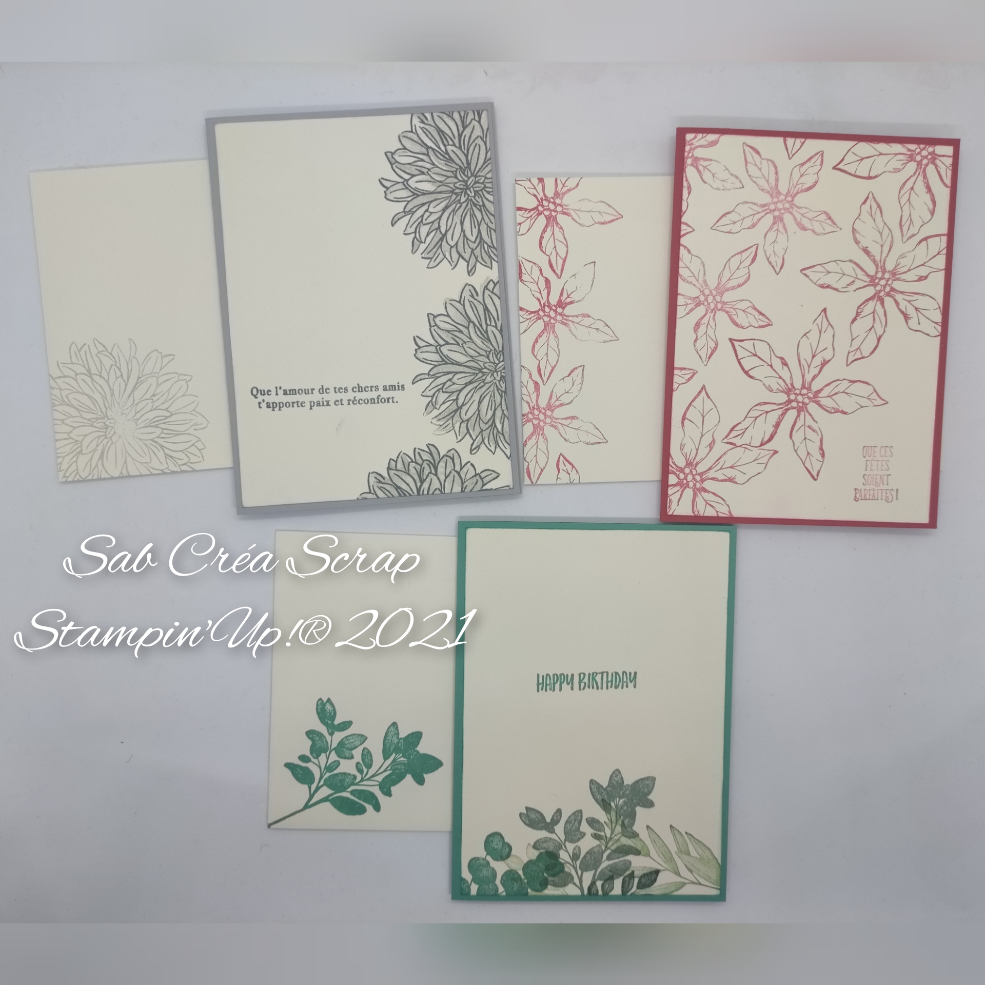 Chaque trio est composé pour une carte dans les tons rouges pour les fêtes de fin d’année , une dans les tons verts pour les anniversaires et une dans les tons gris pour les décès.