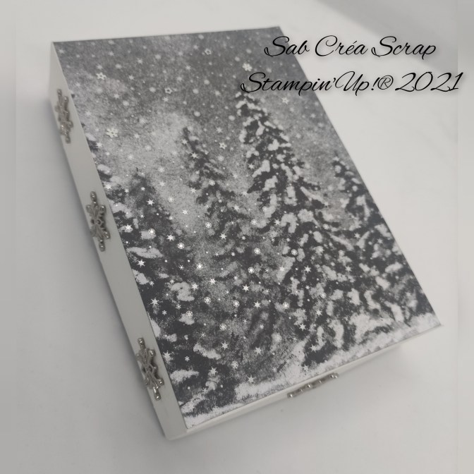 Le mini se range dans sa boîte assortie. J’ai ressortie mes embellissements Flocons des précédents catalogues.