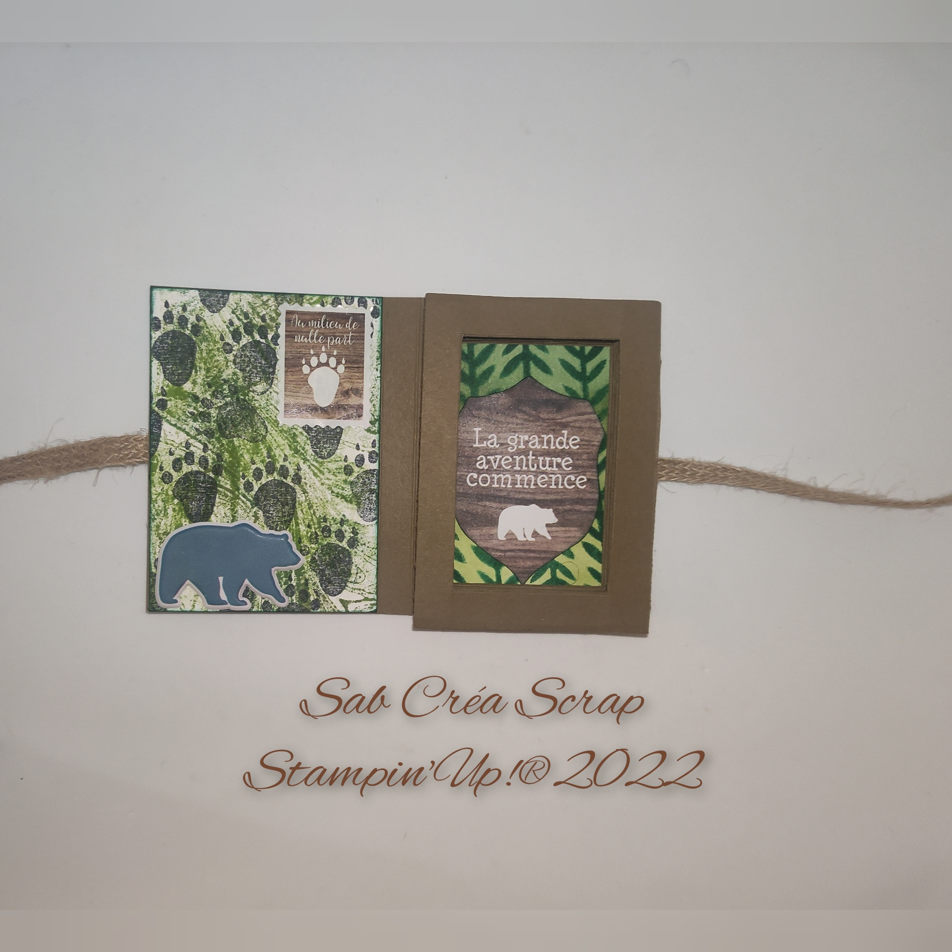 A gauche, du simple tamponnage. Un tampon de fond en vert, et les petites pattes d’ours en noir.