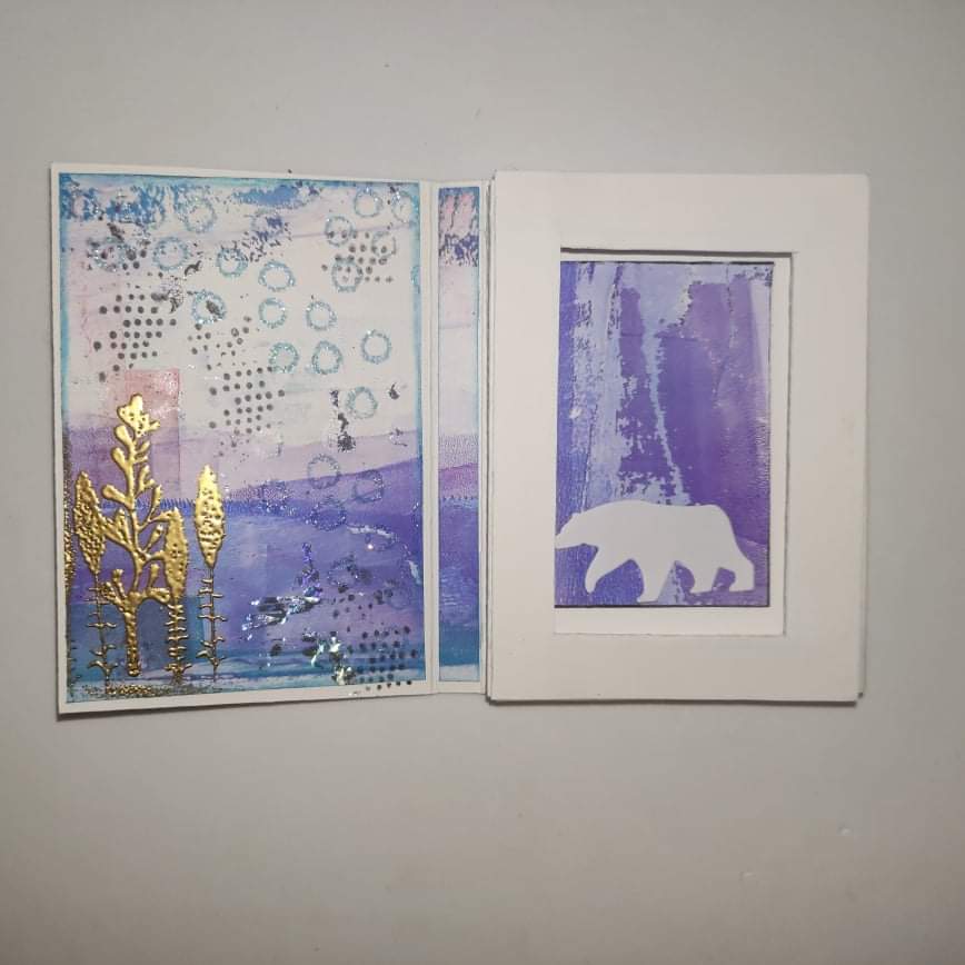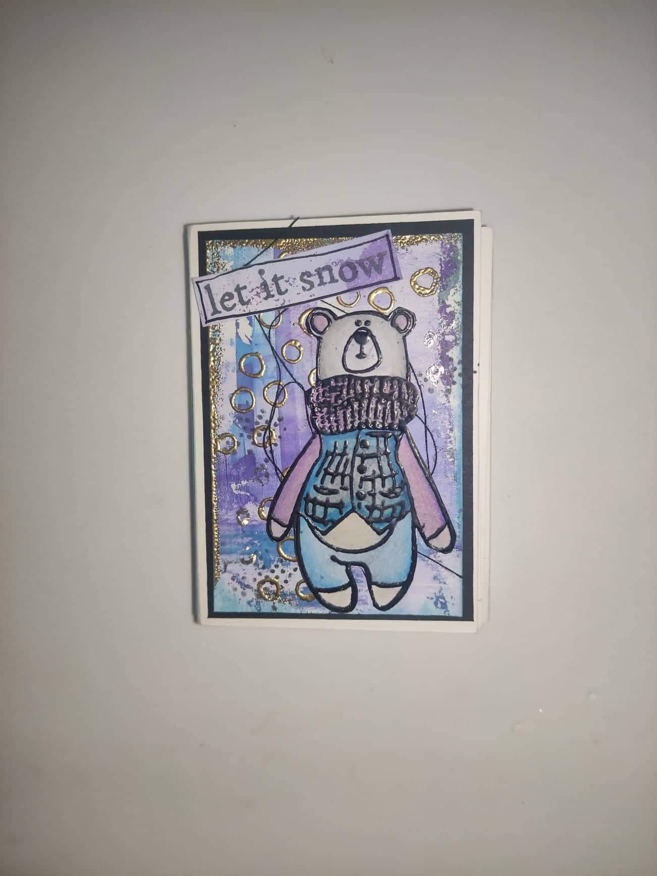 J’ai choisi le thème Ours. Ayant fait l’ATC en janvier, noël ou sapin ne me semblait pas approprié. Et Liberté ne m’inspirait rien du tout (et je crois que je ne suis pas la seule, aucun des binômes n’a choisi ce thème).